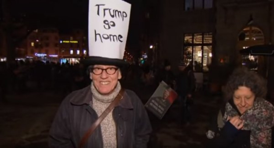 ABD Başkanı Donald Trump'ın Davos'taki Dünya Ekonomik Forumu'na gelmemesini isteyenler protesto gösterisi düzenledi.