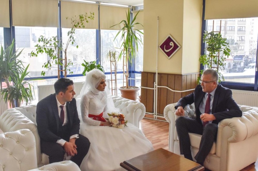 Türkiye tarihinin en büyük doğal afetlerinden birinin yaşandığı depremin ardından ailesiyle birlikte Bursa Karacabey'e gelen Zehra Şeker ve Mehmet Hanifi Harıkçı çifti, önceki gün Karacabey Belediyesi Nikah Dairesinde Belediye Başkanı Ali Özkan'ın kıydığı nikahla dünyaevine girdi. Nikahtan önce depremzede Mehmet Hanifi Harıkçı ile sohbet eden Başkan Özkan, çifte geçmiş olsun dileklerini iletti. Harıkçı, bu ziyarette yaptığı açıklamada şu cümleleri kullandı: