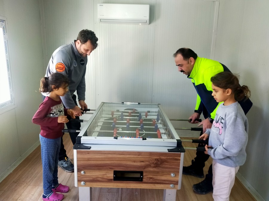 Büyükşehir Belediyesi'nin 1. Bölgede kurduğu konteyner kente yapılan kütüphaneye 1200 kitap ve kütüphane malzemesi teslim edilirken, 3. Bölgedeki konteyner kente de özellikle çocuk ve gençlerin moral bulması için 2 adet masa tenisi ve 2 adet langırt masası kuruldu.