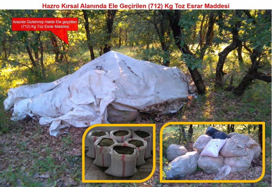 Diyarbakır Valiliği tarafından yapılan açıklamada ele geçirilen uyuşturucunun Cumhuriyet Başsavcılığı talimatıyla muhafazaya alındığı belirtildi. Açıklamada, "Diyarbakır İl Jandarma Komutanlığınca; elde edilen istihbari bilgiye istinaden Lice ve Hazro ilçeleri kırsal alanında bölücü terör örgütünün finans kaynağı olan imal edilmiş yasa dışı uyuşturucu maddeleri ele geçirmek maksadıyla, 25-26 Mayıs 2017 tarihlerinde operasyonel faaliyet icra edilmiştir. İcra edilen faaliyet kapsamında; Hazro ilçesi Ormankaya ile Çitlibahçe köyleri arasında bulunan Mindiro Tepe mevkiinde araziye gizlenmiş vaziyette 712 kilogram toz esrar maddesi, Lice ilçesi Kabakaya köyü Kaşderesi mevkiinde araziye gizlenmiş vaziyette 3 ton 400 kilogram toz, 350 kilogram kubar esrar maddesi olmak üzere toplam 4 ton 462 kilogram uyuşturucu madde ele geçirilmiş olup, ele geçirilen malzemeler Cumhuriyet savcılığının talimatı gereğince muhafaza altına alınarak adli işlemlere başlanmıştır. Bölgemizde yaşayan vatandaşların huzur ve güvenliğinin sağlanması ve BTÖ'nün finans kaynaklarının yok edilmesi maksadıyla narko-terörizmle mücadeleye yönelik çalışmalara artan bir azim ve kararlılıkla devam edilmektedir" denildi.
