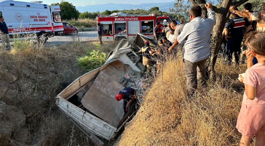İznik-Yenişehir yolunda sürücünün kontrolünden çıkarak yol kenarına devrilen kamyonette sıkışan 2 kişi, itfaiye ekipleri tarafından kurtarıldı.
