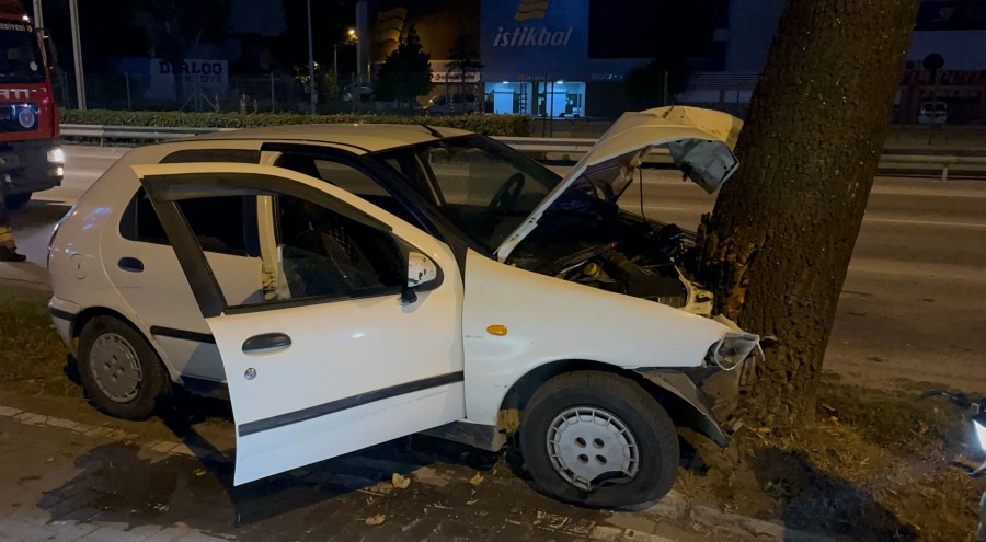 Bursa'da sürücüsünün kontrolünden çıkan otomobil yol kenarında bulunan ağaca çarparak durabildi. Yaşanan kazada 2 kişi yaralandı.