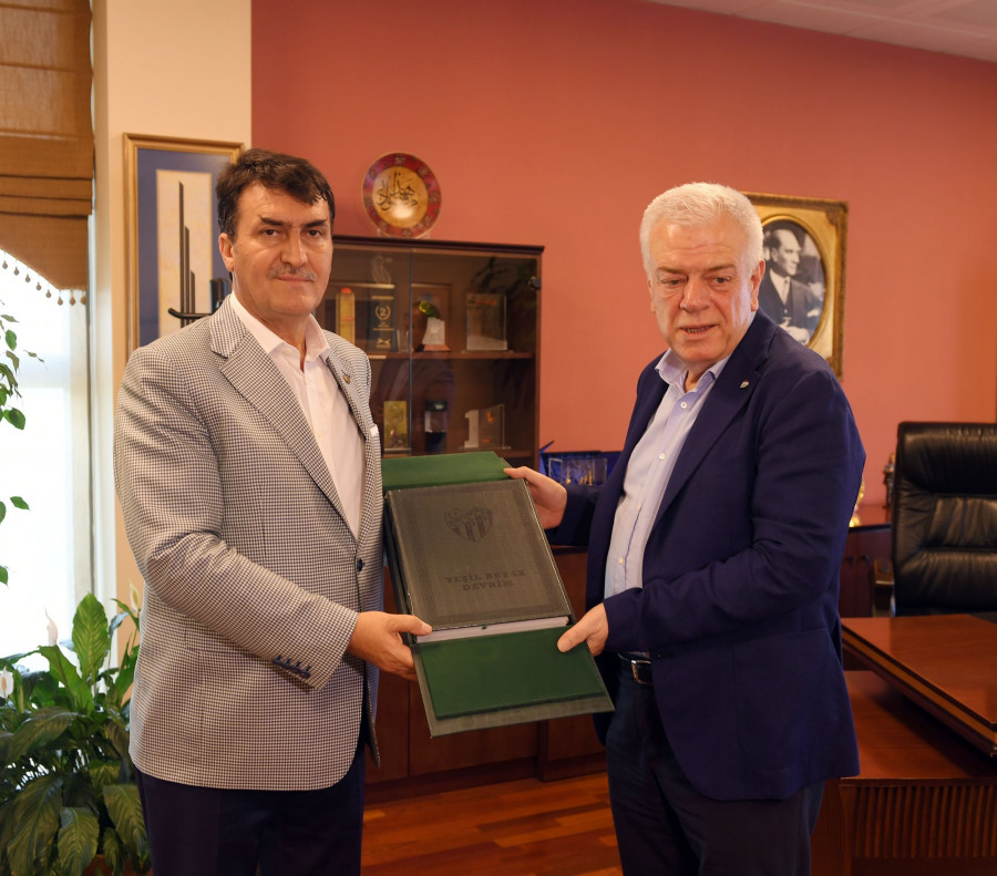 Ziyaretin sonunda Bursaspor Başkanı Ali Ay, Osmangazi Belediye Başkanı Mustafa Dündar'a Bursaspor Kulübü almanağı hediye etti.