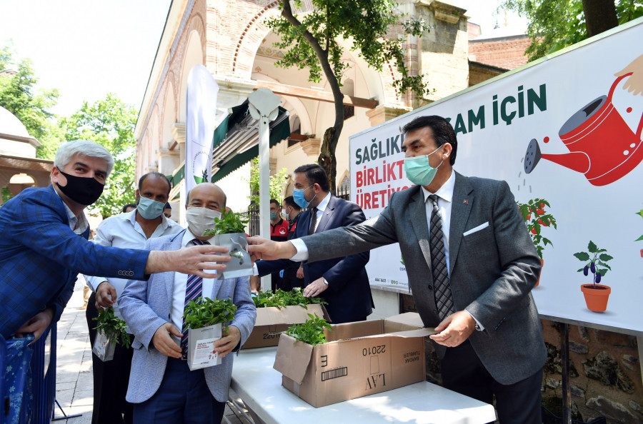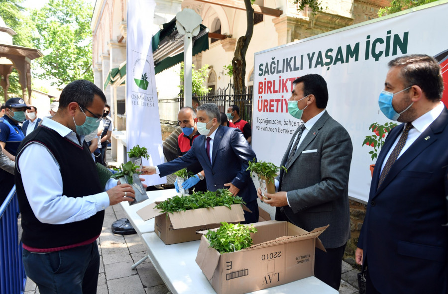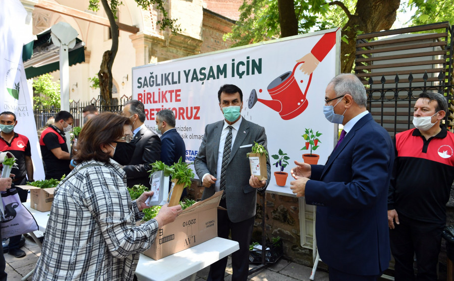 Osmangazi Belediye Başkanı Mustafa Dündar, '5 Haziran Dünya Çevre Günü' dolayısıyla vatandaşlara Osmangazi Belediyesi'nce organik olarak yetiştirilen sebze fidelerinden dağıttı