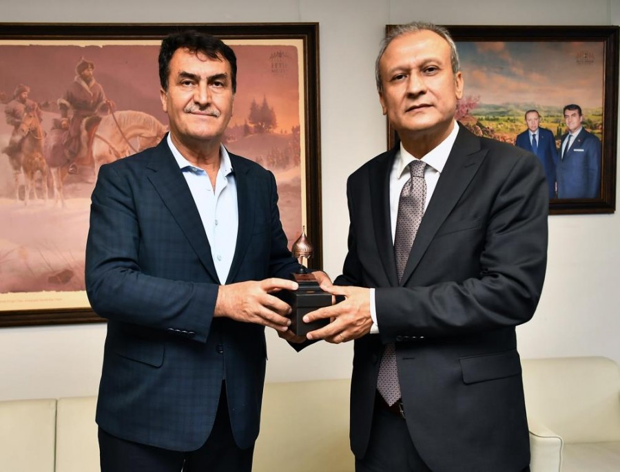 Başkan Mustafa Dündar da Kaymakam Ali Partal'a ziyaretinden duyduğu memnuniyeti dile getirerek teşekkür etti. Dündar, Osmangazi Belediyesi'nin çalışmaları hakkında bilgi verdiği Partal'a Orhan Gazi'nin miğferinin replikasını hediye etti.