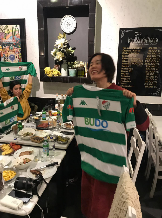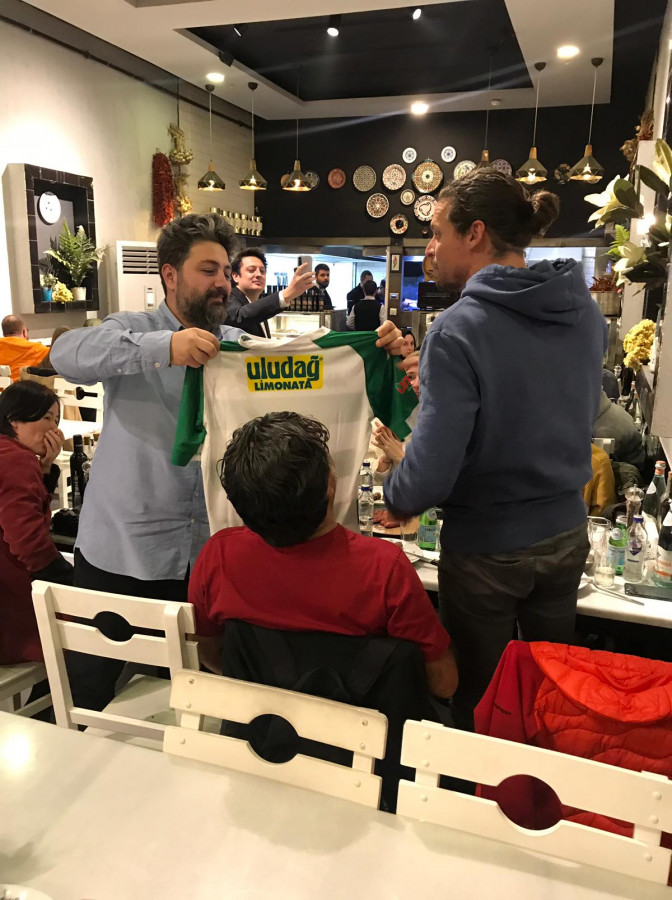 Ceyhun ve Orçun Yaman'ın sahibi olduğu Kayhan Köftecisi'ni ziyaret eden dünyaca ünlü bloggerlara, Bursaspor forması hediye edildi.