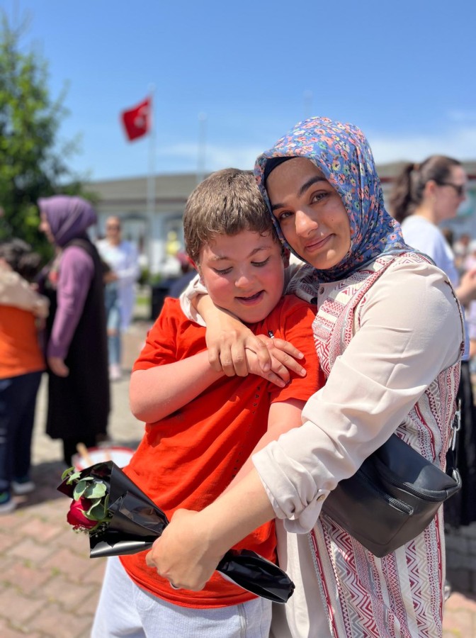 Programın en özel anlarından biri, çocukların annelerine ve öğretmenlerine çiçek takdim ettiği anlardı. Kimi heyecanla, kimi utangaçça uzatılan çiçekler, alandaki herkesin gözlerinin dolmasına neden oldu.