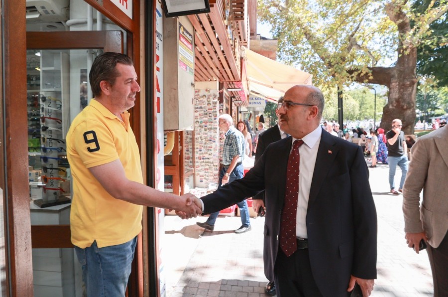 Tarihi Hanlar bölgesi ve Kapalı Çarşı'da hem esnafla hem de vatandaşlarla görüşüp vedalaşan Mahmut Demirtaş, Bursa'dan unutulmaz hatıralarla ayrıldığını belirterek, "Ulu şehir Bursa'mıza hizmet etmenin onuru ve gururuyla sevgi ve saygılarımı sunuyorum" ifadelerini kullandı.