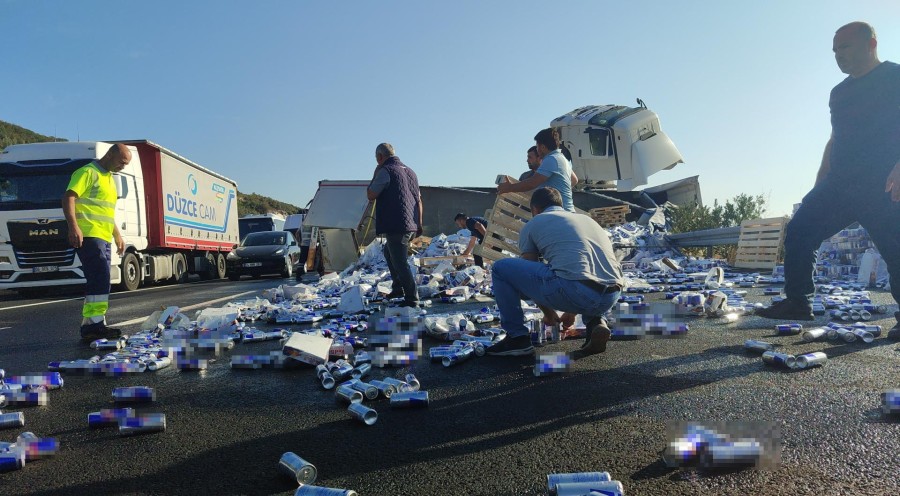 Kaza nedeniyle otoyolun Bursa istikameti iki şeritten sağlanmaya çalışırken yolda uzun araç kuyrukları oluştu. Yola saçılan enerji içecekleri çalışanlar tarafından yol kenarına toplanırken, enerji içecekleri bir başka kamyona aktarıldıktan sonra tır vinç yardımı ile bulunduğu yerden kaldırıldı. Kaza ile ilgili tahkikat başlatıldı.