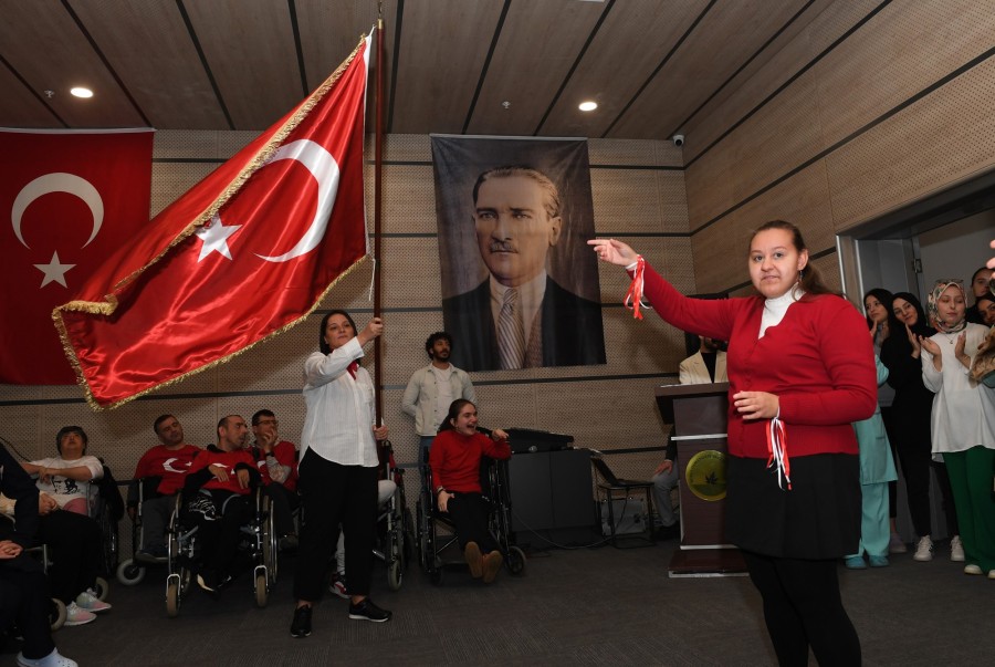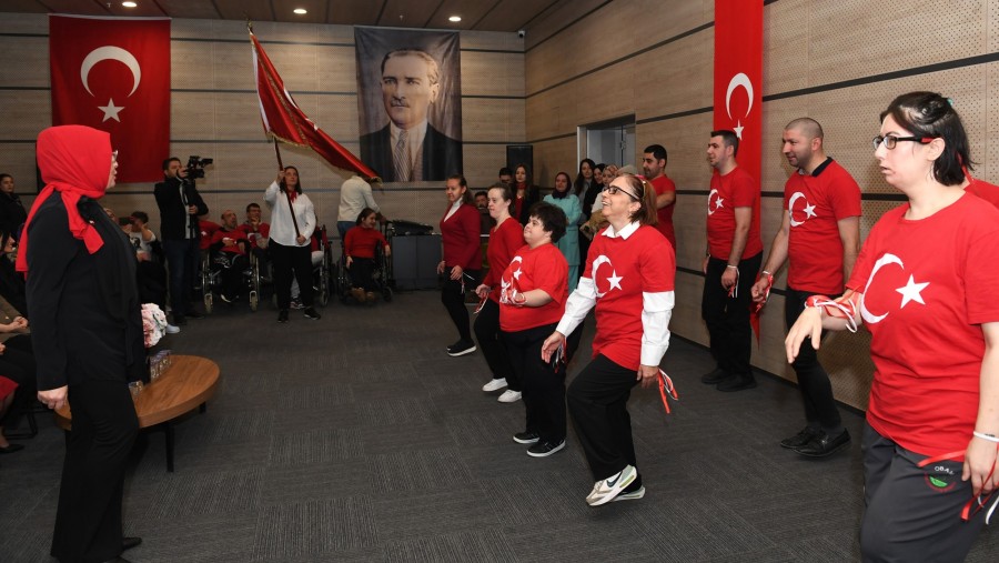 Osmangazi Belediyesi Engelliler Bakım Merkezi (OBAM)'da eğitim gören özel ihtiyaç sahibi bireyler, TUSAŞ'a düzenlenen hain terör saldırı nedeniyle erteledikleri 29 Ekim Cumhuriyet Bayramı kutlama programını gecikmeli de olsa gerçekleştirmenin mutluluğunu ve gururunu yaşadı. Cumhuriyetin 101'inci yılını, söyledikleri marşlar ve hazırladıkları koreografi ile kutlayan engelli bireyler, daha sonra üzerinde Atatürk'ün fotoğraflarının yer aldığı siyah pelerinleri giyerek ölümünün 86'ıncı yılında Atalarını saygı, minnet ve özlem ile andı.