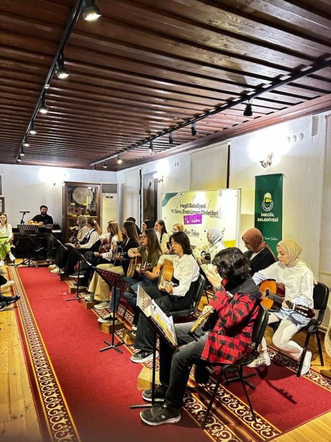 İnegöl Belediyesi'nin kültür sanat kursları çerçevesinde düzenlediği 5 ayrı enstrüman kursunu başarıyla tamamlayan öğrenciler, yıl sonunda yeteneklerini sergiledi. Kursiyerlerin performansı dinleyenlerden tam not aldı.