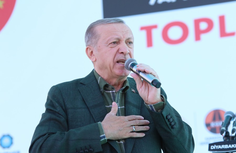 Hz Ömer'in fethinden beri bizim olan Diyarbakır'a göz diken iflah olmaz diyen Cumhurbaşkanı Erdoğan, "Göz dikenin iflah olmayacağı açıktır. Şu Diyarbakır surlarının dili olsa da konuşsa. Daha düne kadar bu coğrafyanın tarihi ile kültürü ile sanayisi ile en önemlisi insanı ile en seçkin şehri olan Diyarbakır'ın kolunu, kanadını kıranların inadını anlatsa. Demokrasi lafını eksik etmeyenlerin yaptıklarını anlatsa. Bunların nasıl zulmün, kan emecisi olduğunu anlatsa. Sürekli Kürt lafı ederek Kürtleri sömürenlerin yaptıkları riyakarlıkları anlatsa. Bunların adı Kürt, kendileri Kürtlükle alakası yok. Kürt kardeşlerime en büyük zumlu yapan bunlar. Kandil'e benim Kürt çocuklarımın kardeşlerini kaçıran her türlü tacizi yapan bunlar değil mi? Öyleyle 7 ay var. 7 ay sonra yapılacak seçimlerde bütün bunların hesaplarını sormaya var mıyız?" dedi.