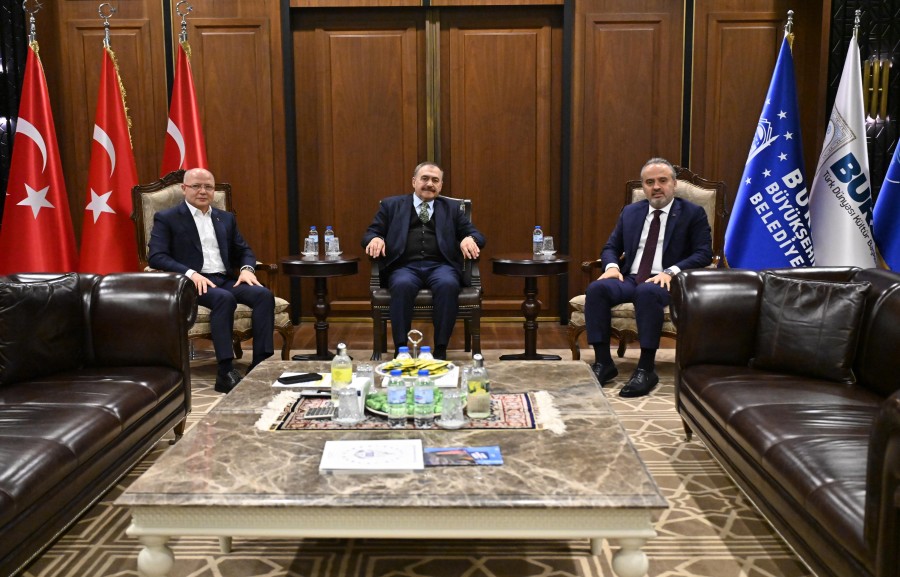 Bursa Büyükşehir Belediye Başkanı Alinur Aktaş, Eski Orman ve Su İşleri Bakanı Prof. Dr. Veysel Eroğlu'nu makamında ağırlayarak yapılan ve yapılacak olan projeler hakkında fikir alışverişinde bulundu.