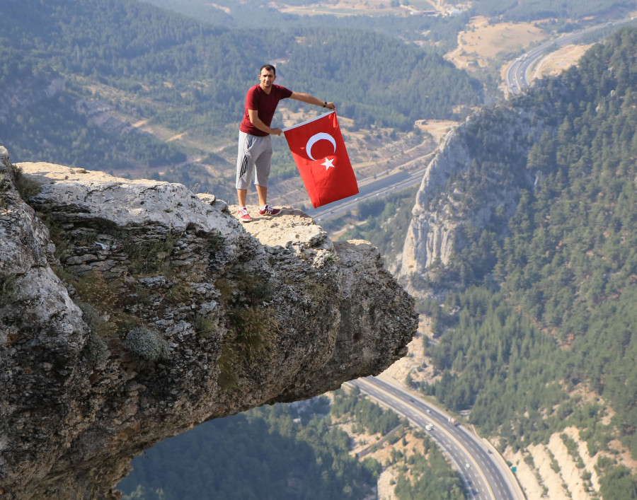 Mersin'in Tarsus ilçesinde deniz seviyesinden bin 650 metre yukarıda bulunan Gülek Kalesi, ufak fotoğraf hileleriyle uçurumun kenarında duruyormuş hissi veriyor. Uçurumun kenarındaymış gibi muhteşem manzaralı fotoğraf çektirmek için vatandaşlar sıraya girerek bu anlarını ölümsüzleştiriyor.
