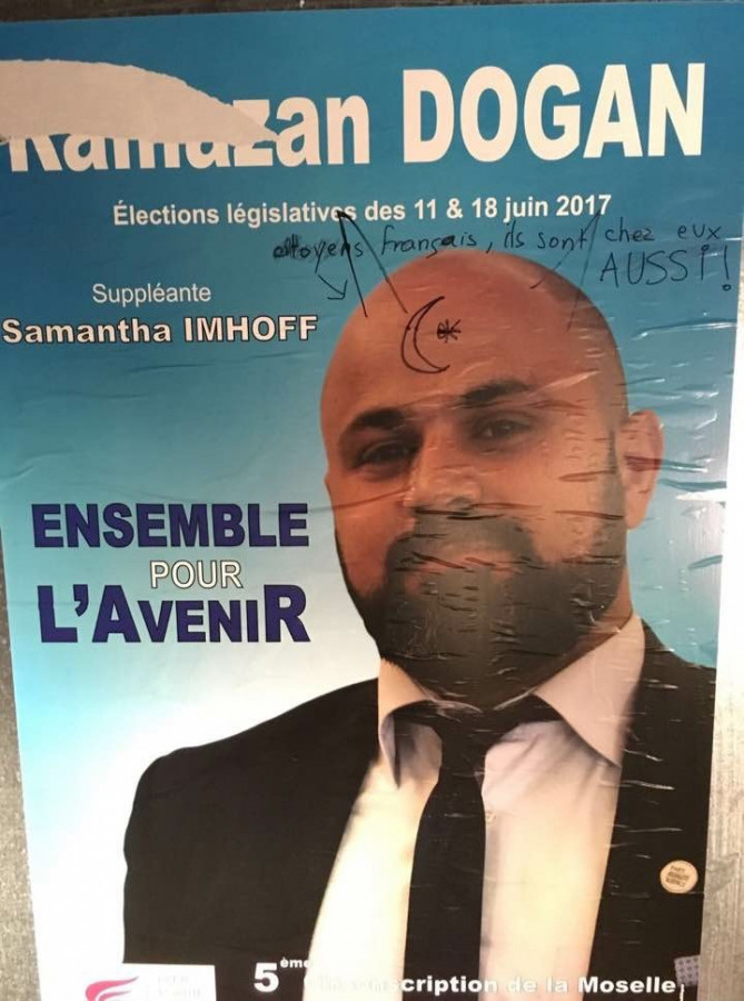 Fransa'da genel seçimler öncesi Eşitlik ve Adalet Partisi-Parti Egalite Justice (PEJ) adaylarının afişlerine saldırı yapıldı.