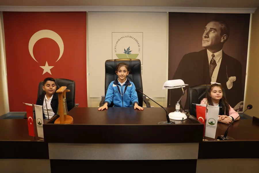 Osmangazi Belediyesi Meclis Salonu'nda ağırlanan ilköğretim öğrencileri, ziyaretçi meclisi uygulamasıyla yerel yönetim süreçlerini uygulamalı olarak deneyimledi. Küçük yaşta demokrasi kültürüyle tanışan çocuklar, Osmangazi için fikir üreterek hem öğrendi, hem de eğlendi.