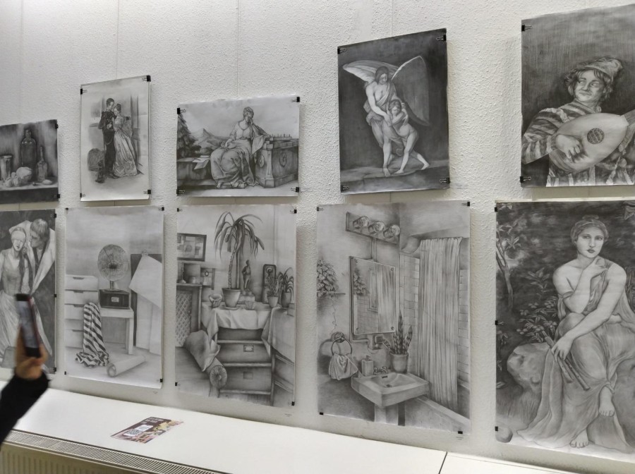 Öğrencilerin 27 karakalem portre, 49 yağlı boya, 13 baskı resim ,3 üç boyutlu heykel büst ve 56 adet farklı teknikle yaptıkları tablolardan oluşan 148 adet koleksiyon 27 Mayıs tarihine kadar izlenebilecek.
