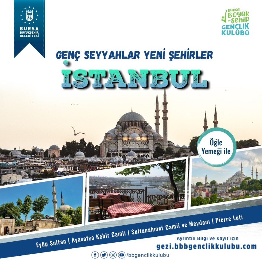 Atatürk Kongre ve Kültür Merkezi'nden rehber eşliğinde hareket eden 40 kişilik ilk grup, ücretsiz tur sayesinde İstanbul Eyüp Sultan, Sultan Ahmet, Ayasofya ve Çamlıca Camilerini gezdi. Öğle yemeğinin de Büyükşehir Belediyesi tarafından ikram edildiği gezi programına katılmak isteyen gençler, Bursa Büyükşehir Gençlik Kulübü Mobil uygulaması ve ''gezi.bbgenclikkulubu.com'' adresinden online kayıt yaptırabilecek.