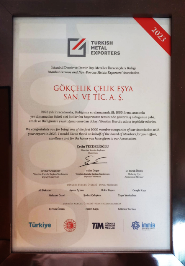 Bursa merkezli olan ve 45 yıllık tecrübesiyle raf ve depo sistemleri üretimi konusunda Türkiye'nin lider kuruluşlarından biri olan Gökçelik A.Ş. 2023 yılında gerçekleştirdiği ihracat rakamı ile İstanbul Demir ve Demir Dışı Metaller İhracatçıları Birliği'nin (İMMİB) ilk 1000 firma listesinde yer almayı başardı.