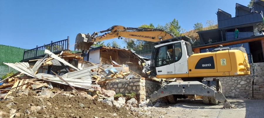 Osmangazi Belediyesi, kaçak yapılarla mücadelesine devam ediyor. Yapı Kontrol Müdürlüğü ekipleri ve vatandaşların şikayetleri üzerine tespit edilen kaçak yapılar, yasal işlemlerin tamamlanmasının ardından tek tek yıkılıyor. Belediye ekipleri, Uludağ eteklerinde yer alan Gökçeören Mahallesi'nde imara aykırı şekilde inşa edildiği belirlenen villaların yıkılması için başlattığı çalışmayı kararlılıkla sürdürüyor.