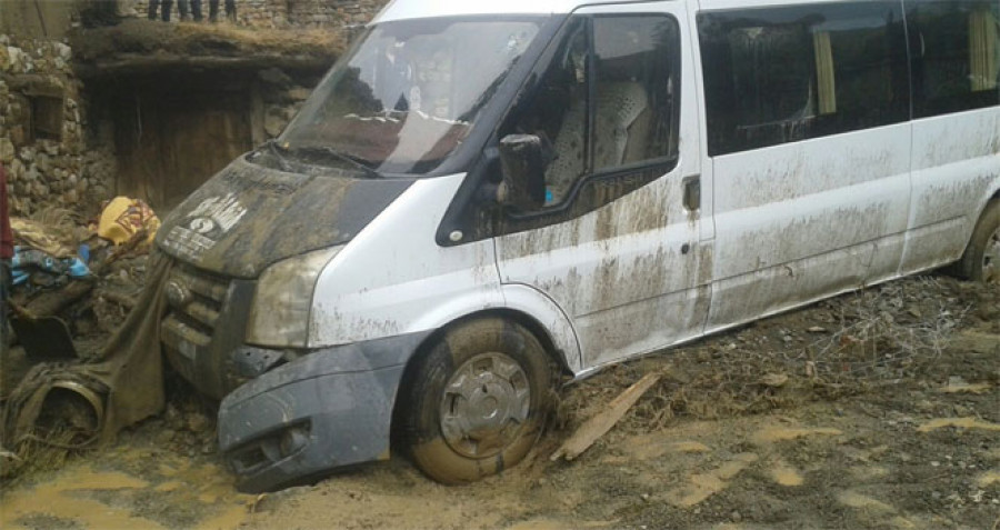 Selami Atlı isimli köy sakinine ait minibüs de sel sularına kapılarak sürüklendi.
