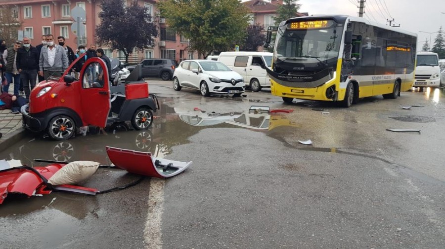 Kazada elektrikli araç içerisinde bulunan sürücü Sefa A. ile yanındaki kuzenleri Halil İbrahim A.(16) ve Merve A.(16) yaralandılar.