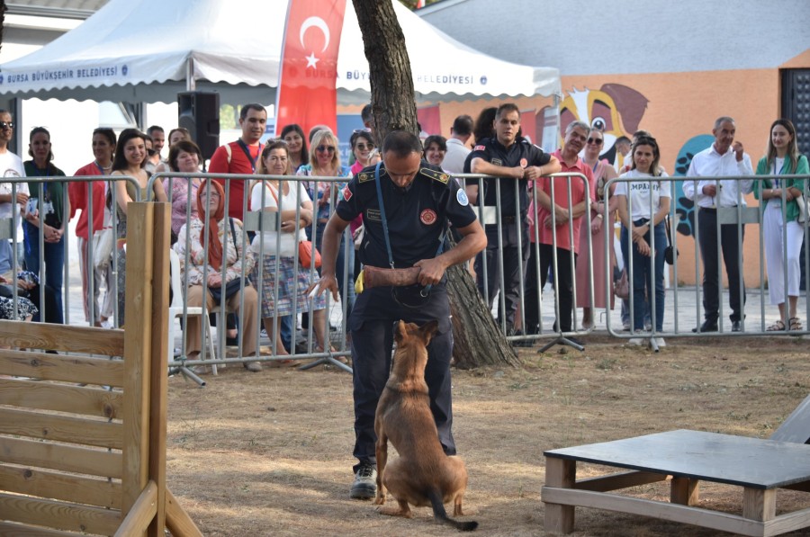 Bursa Büyükşehir Belediyesi'nin Halk Sağlığı Haftası kapsamında düzenlediği etkinliklerde bu kez 'sokak hayvanları' konuşuldu. Uzman isimlerin söz aldığı programda, K9 köpeklerinin gösterisi de katılımcılar tarafından büyük beğeniyle izlendi.