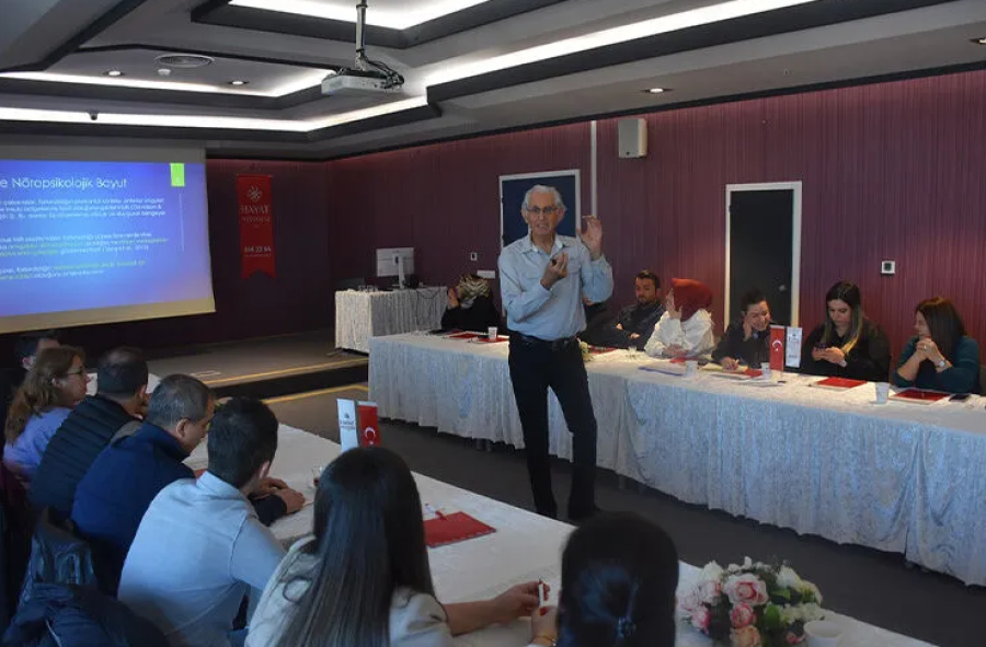 Programda Hayat Hastanesi Sağlık Birimi Sorumluları ile Hayat Şifa Hastanesi Sağlık Birimi Sorumlularına bir sunum gerçekleştiren Prof. Dr. Haydar Sur, iş yaşamında ve günlük hayatta iletişimde başarılı olmanın en önemli kurallarından birinin duygusal zekayı kullanmak olduğunu söyledi.