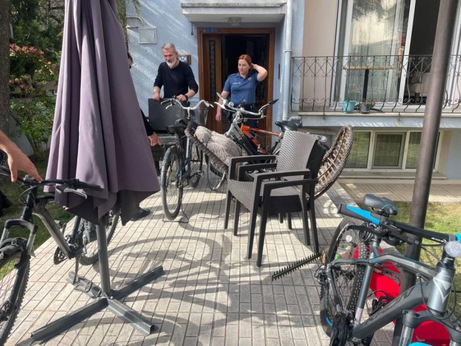 Cumhuriyet Başsavcılığı tarafından verilen iznin ardından evde yapılan aramada çalıntı olduğu değerlendirilen 5 adet bisiklet, 6 adet sandalye masa, ahşap oymalı sehpa, armut salıncak, çim biçme makinesi, suç unsuru olduğu değerlendirilen kılıçlar, kesici aletler ve mermi ele geçirildi. Gözaltına alınan şüphelinin işlemlerinin sürdüğü öğrenildi.