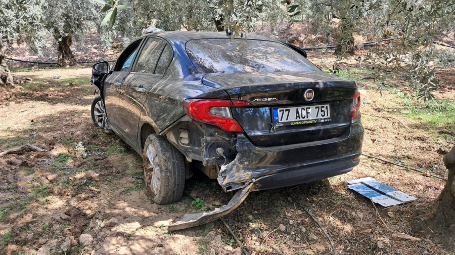 Yol kenarlarındaki zeytin ağaçlarının bulunduğu tarlaya uçan otomobil, kullanılmaz hale geldi. Hava yastıkları açılan, camları kırılan ve motor kısmının büyük bir kısmı parçalanan otomobilden çıkan sürücü B.S., yaralı olarak Orhangazi Devlet Hastanesine kaldırıldı.