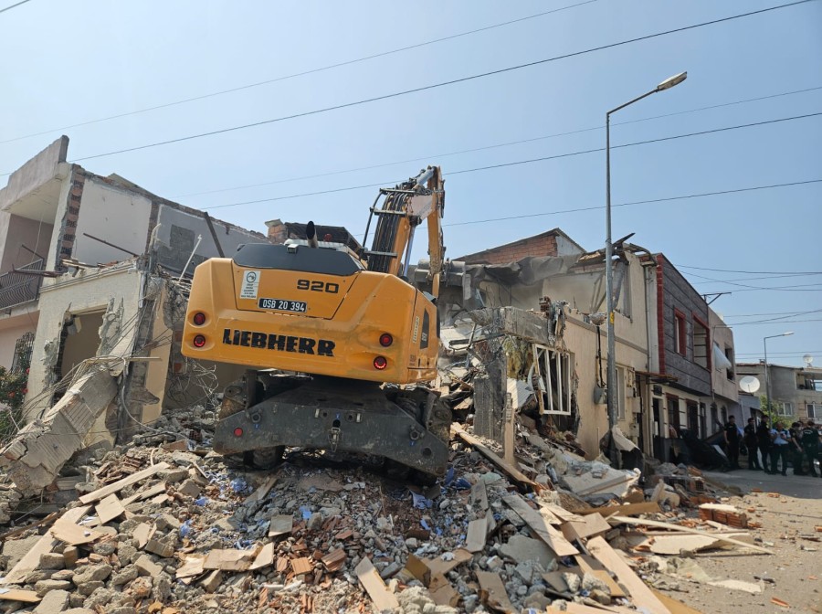 Osmangazi Belediyesi, kaçak yapılaşmaya karşı sürdürdüğü mücadele kapsamında Hamitler Mahallesi'nde imara aykırı şekilde inşa edildiği belirlenen iki katlı binayı yıktı.