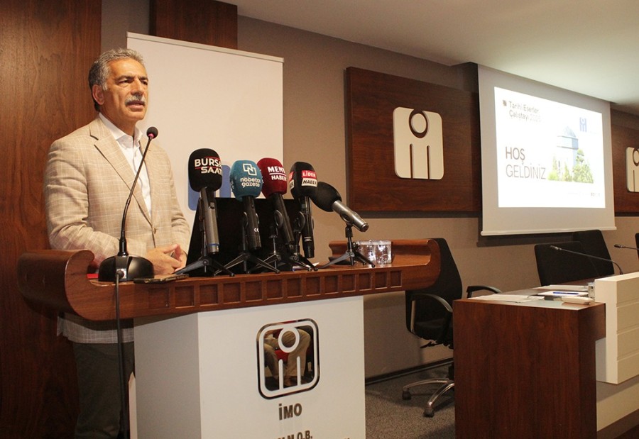 Açılış konuşmasını yapan İMO Bursa Şubesi Yönetim Kurulu Başkanı Serdar Atilla Erdem, Çalıştayda bir milletin hafızasını, kültürel sürekliliğini ve kimliğini temsil eden tarihî miraslardan söz edeceklerini belirterek, "Bu eserler, sadece geçmişin değil; geleceğin de yapı taşlarıdır. Onları anlamak, korumak ve yaşatmak ise başta biz mühendisler olmak üzere tüm meslek disiplinlerinin ortak sorumluluğudur. Tarihî eserlerin korunması, yalnızca bir restorasyon meselesi değil; aynı zamanda teknik, estetik, etik ve kültürel bir meseledir. Bu eserlerin taşıyıcı sistemlerinden malzeme özelliklerine, zeminle kurdukları ilişkiden çevresel etkileşimlerine kadar pek çok teknik boyutu vardır. Özellikle yığma yapılarda karşılaştığımız stabilite problemleri, nem ve rutubet kaynaklı bozulmalar ve statik-dinamik davranışların yeniden analizi gibi pek çok mühendislik başlığı, koruma sürecinin temel yapı taşlarıdır. Bunun yanında, bir tarihi eserin "aslına uygun" olarak yeniden ihyası, modern mühendislik yaklaşımlarının tarihsel bağlamla uyum içinde nasıl kullanılacağını da sorgulatmaktadır. Gelişen yazılım teknolojileriyle birlikte dijital belgeleme, 3D lazer tarama, yapay zekâ destekli modelleme ve malzeme analizleri artık bu sürecin ayrılmaz parçaları hâline gelmiştir. Ancak burada bir durup düşünmemiz gerekiyor: Tarihi eserleri sadece fiziksel olarak ayakta tutmak yeterlidir midir? Elbette ki hayır. Tarihi eserler bir toplumun kolektif hafızasıdır. Kültürel kimliğimizin şekillendiği, geçmişle bağ kurabildiğimiz somut hafıza alanlarıdır. Bu nedenle, bu eserlerin yaşatılması yalnızca bir mühendislik görevi değil; aynı zamanda bir etik sorumluluk, bir medeniyet ödevidir. Şunu unutmamalıyız: Kültürel mirasını koruyamayan toplumlar, geleceğe de güçlü bir iz bırakamazlar" dedi.