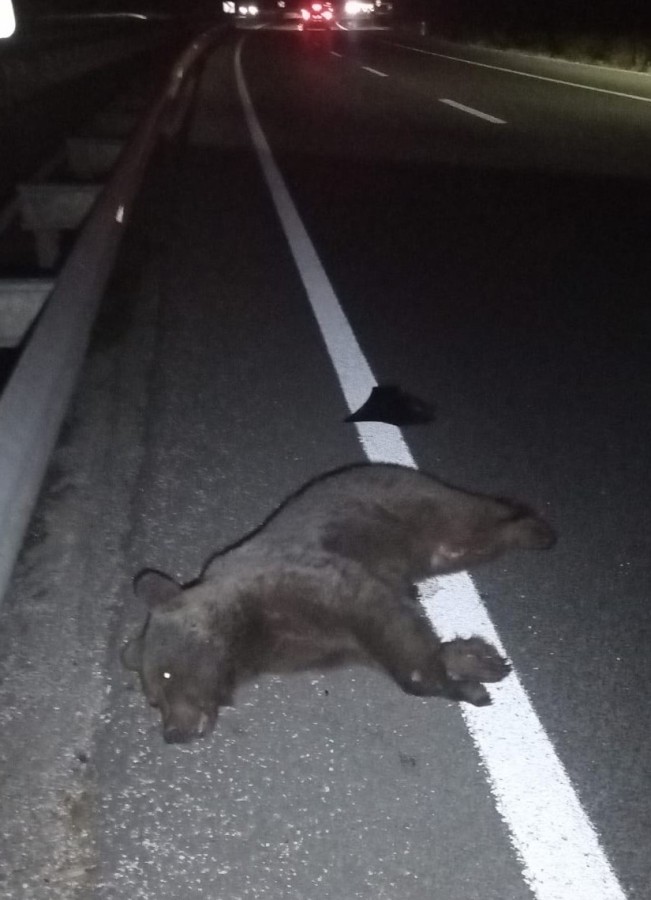 Bursa'nın İnegöl ilçesinde, otomobilin çarptığı yavru ayı telef oldu.