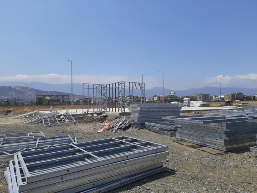 Kahramanmaraş merkezli depremlerden en çok etkilenen bölgelerden biri olan Gaziantep'in İslahiye ilçesinde Osmangazi Belediyesi tarafından kurulan Osmangazi Mahallesi'nde prefabrik konutlar tamamlanırken sıra sosyal alanlara geldi. 100 hanelik prefabrik evlerde güvenli yaşam başlarken, mahalle içerisindeki okul, mescit, millet kıraathanesi ve polis merkezinin inşaatı da büyük bir hızla devam ediyor.