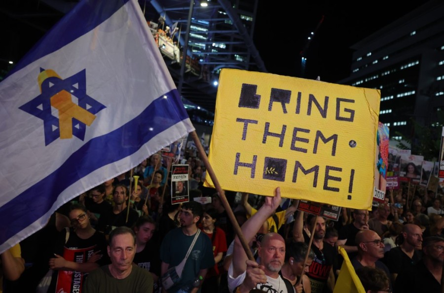 Yaklaşık 500 bin kişi Netanyahu'ya ateşkes ve esir anlaşmasına imza atması için çağrı yaptı. Protesto gösterisinde, "Philadelphia Koridoru esir çıkmazına dönüşüyor", "Onları eve getirin", "Binyamin Netanyahu İsrail'i öldürüyor" pankartları taşıyan göstericiler, Netanyahu aleyhinde sloganlar attı.