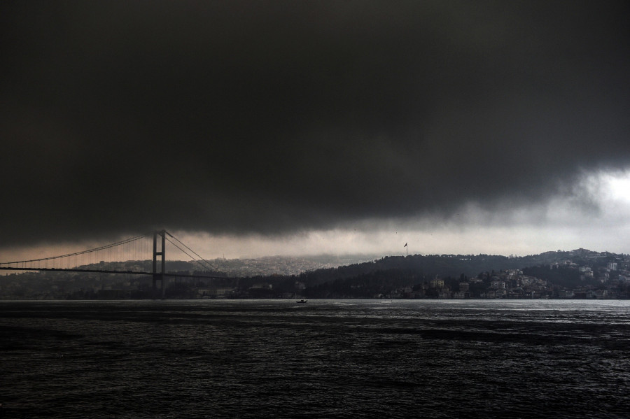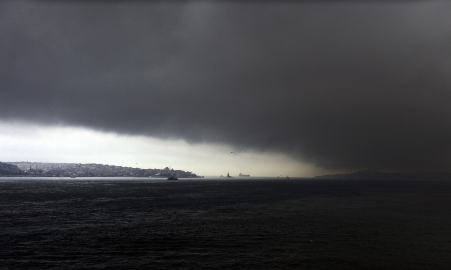 Kar yağışı bekleyen İstanbul'da hava sıcaklığı düşerken, şehrin üstünü de kara bulutlar kapladı.