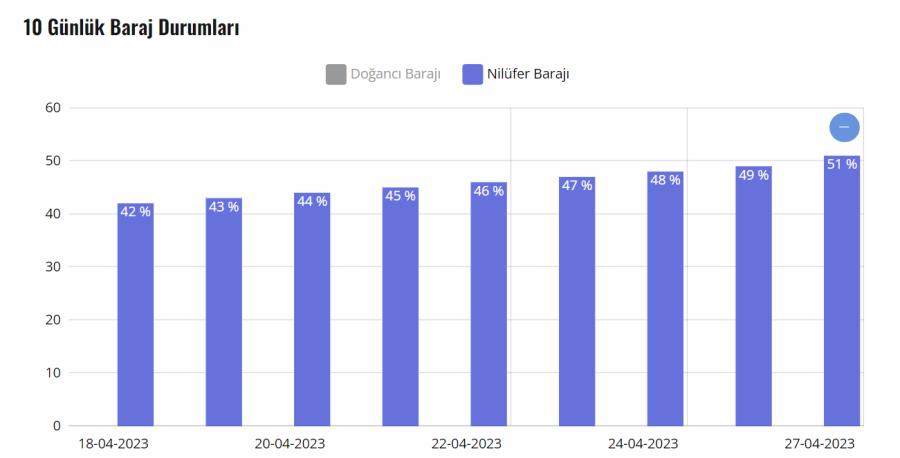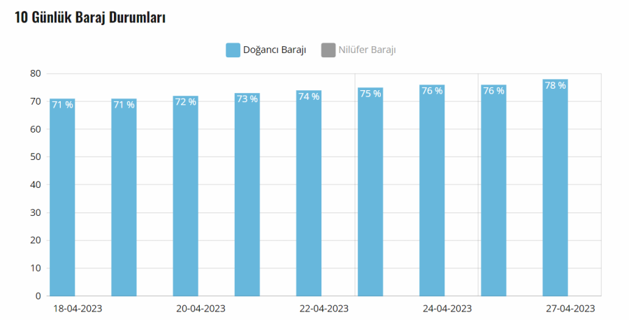 Doğancı Barajı yüzde 78, Nilüfer Barajı ise yüzde 53 doluluk oranına ulaştı. Yetkililer ise suyun yine de tasarruflu kullanılması gerektiği hususunda vatandaşları uyarmaya devam ediyor.