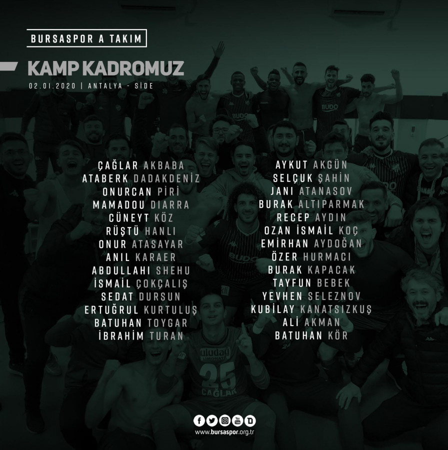 Bursaspor'un Antalya'da 2 Ocak'ta başlayacağı kampın kadrosu belli oldu.