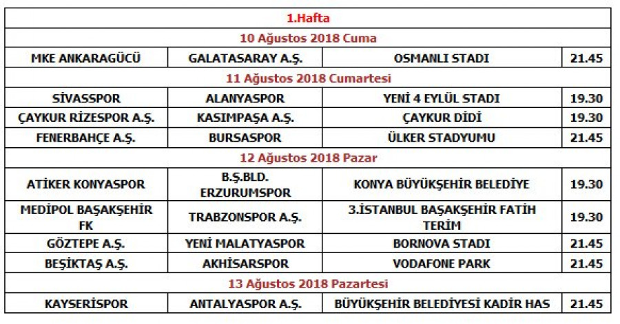 İşte ligin ilk haftasının programı: