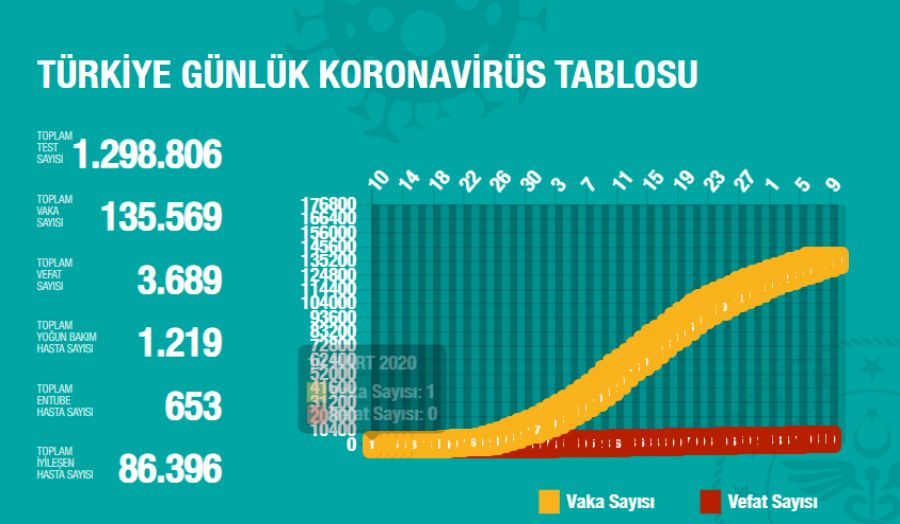 Sağlık Bakanlığı Türkiye'deki koronavirüs vakalarına ilişkin son durumu paylaştı. Türkiye'deki toplam can kaybı 3 bin 689 oldu.