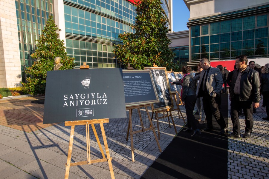 Heykel'deki Atatürk Anıtı'na çelenk sunulmasıyla başlayan anma törenleri kapsamında Bursa Büyükşehir Belediyesi tarafından da Tayyare Kültür Merkezi'nde düzenlenen 'Fotoğraflarla Atatürk' ve "Atatürk'ün Bursa Ziyaretleri" temalı iki fotoğraf sergisi ziyarete açıldı. Bursa Valisi Mahmut Demirtaş ile Bursa Milletvekili Mustafa Yavuz'un da katıldığı açılış töreninde konuşan Büyükşehir Belediye Başkanı Alinur Aktaş, milli mücadelenin başkomutanı, Cumhuriyet'in banisi Gazi Mustafa Kemal Atatürk'ü vefatının 85. yıldönümünde rahmet ve minnetle andı.