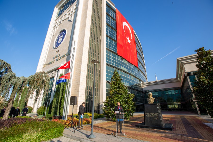 Bursa Büyükşehir Belediyesi personeli de anma töreni için belediye binası önündeki tören alanında toplandı. Saat 09.05'te sirenlerin çalmasıyla başlayan anma töreninde Türk Bayrağı yarıya indirildi, tüm personel hep bir ağızdan İstiklal Marşı'nı okudu. Büyükşehir Belediyesi Başkanvekili Fethi Yıldız, yaptığı konuşmada Gazi Mustafa Kemal Atatürk'ü rahmet ve minnetle andı. Büyükşehir personeli, buradaki törenin ardından Atatürk'ün Bursa ziyaretlerinde çekilmiş fotoğraflarının yer aldığı sergiyi de ilgiyle gezdi.