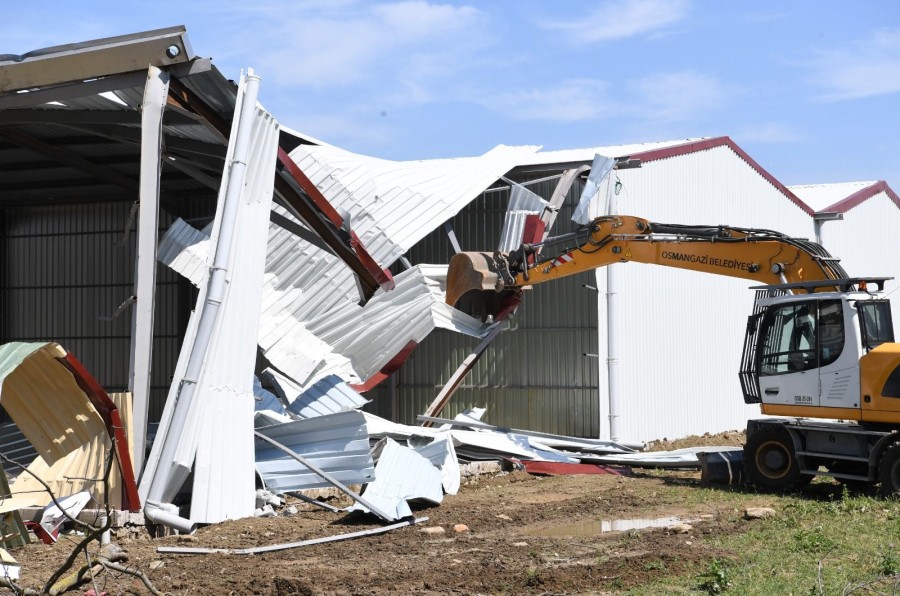 Bursa'nın Osmangazi ilçesindeki İsmetiye Mahallesi'nde birinci sınıf tarım arazisi olan bölgeye yapılan kaçak inşaat ise görenleri hayrete düşürüyor. İmar olmamasına rağmen tarla vasfındaki araziye 11 bloktan oluşan fabrika inşa ediliyor. Belediye ekiplerinin tespit ettiği kaçak yapı için derhal yıkım kararı çıkartıldı. Osmangazi Belediyesi'ne bağlı ekipler iş makineleriyle tarım arazisine yapılan fabrikanın yolunu tuttu. Hızlıca yıkıma başlayan ekipler 11 ayrı bloktan oluşan fabrika inşaatında 1 bloğun yıkımını gerçekleştirirken, inşaat sahibi mahkemeden aldığı yürütme kararıyla yıkımı durdurdu. Mahkeme kararı üzerine yıkımı gerçekleştiremeyen belediye ekipleri geri dönmek zorunda kaldı. 5 dönümlük bir tarım arazisi daha yok olma tehlikesiyle karşı karşıya kaldı.