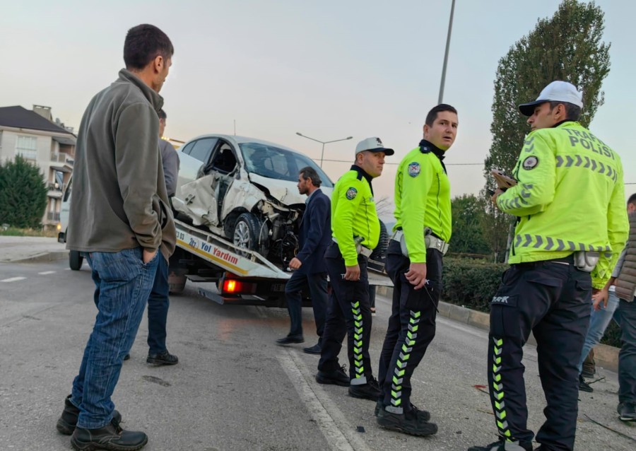 Tabelaya ve orta refüje çarpıp karşı yöne geçen araç, karşı yönden gelen sürücü İsmail A.(45) yönetimindeki 16 FE 122 plakalı minibüs ile çarpışarak durabildi.