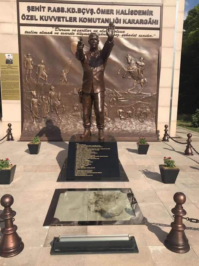 Fetullahçı Terör Örgütü'nün (FETÖ) 15 Temmuz'daki darbe girişimi sırasında Özel Kuvvetler Komutanlığını ele geçirmek isteyen darbeci general Semih Terzi'yi başından vurduktan sonra şehit olan ve girişiminin önlenmesine önemli rol oynayan Ömer Halisdemir'in şehit düştüğü yere anıt yapıldı.