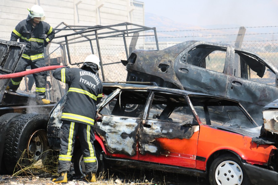 Kahramanmaraş'ta bir yediemin otoparkında çıkan yangında 71 araç yanarak kullanılamaz hale geldi.