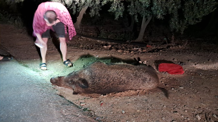 Bursa'nın İznik ilçesinde yola aniden fırlayan yaklaşık 350 kiloluk domuz, bir kamyonun çarpması sonucu telef oldu.
