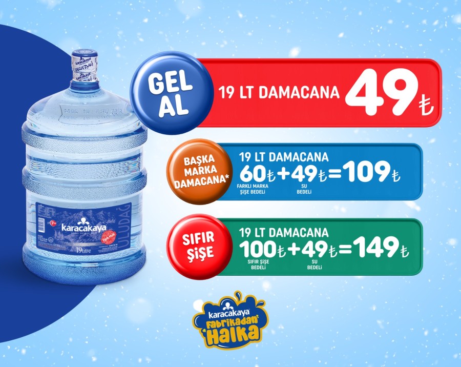 Bu sistemle, Uludağ'ın kaynağından çıkan doğal mineralli su, lojistik maliyet olmadan, çevreci bir yaklaşımla, tüketiciye 49 TL gibi üçte bir fiyatla sunuluyor. Damacana suyun dışında sıcak, soğuk birçok içecek grubunun da tüketiciyle toptan fiyatına buluşturulduğu Karacakaya Gel Noktaları, müşterilerinin yanı sıra bayilerinin de yüzünü güldürüyor.