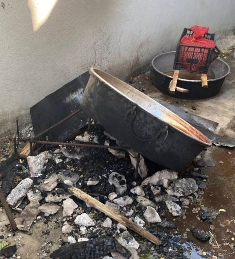 Olay, saat 16.00 sıralarında İnegöl'ün kırsal Kurşunlu Mahallesi'nde bir evin bahçesinde meydana geldi. Ailenin kazana koydukları domatesleri salça yapmak için kaynatmaya başladığı sırada kazanın altındaki taş parçalara ayrıldı.