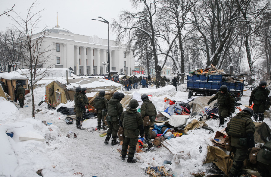 Ukrayna Parlamento Binası Verkhovna Rada önünde sabah saatlerinde toplanan protestocular ile polis arasında çatışma yaşandı. Kiev'deki parlamento binası yakınlarında bulunan bir çadır kentte yaşanan çatışmalarda 4 polis ve 6 protestocu yaralandı. Polis Amiri Andriy Kryschenko, çatışmaların Kiev polisinin sabah saatlerinde, Kiev Mahkemesi'nin verdiği karar sonucu bölgedeki soruşturmalarını yürüttükleri sırada yaşandığını ifade etti.